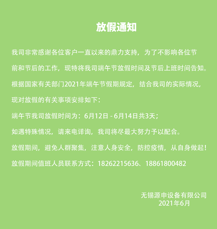 2021年广州中国·金沙(js93252-VIP认证)环保端午节放假通知